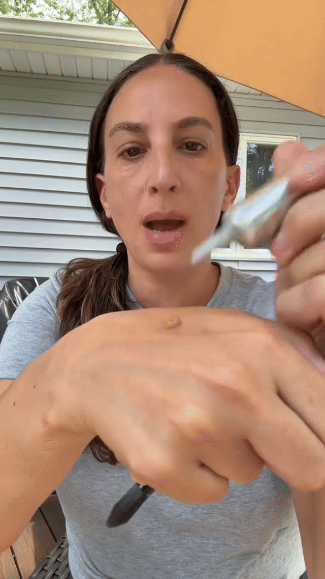 - Shake tube and squeeze a pea-sizedamount onto your hand.